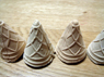 Mold some soft clay into baking cups. Dry it for a day to get right consitency. Then tap the surface with a tooth brush to get a realistic surface.